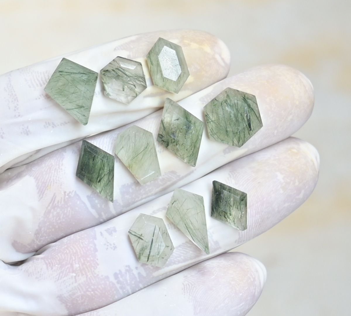Beautiful Amazing and High Quality Natural Green Rutile Step Cut Mix Cabochon Gemstone